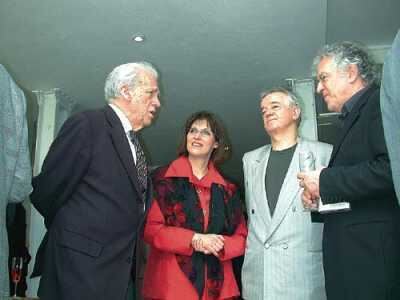 »So viele interessante Leute auf so engem Raum wie in Tübingen, das gibt's nicht wieder«: Walter Jens im Gespräch mit Oberbürgermeisterin Brigitte Russ-Scherer und den Theaterleuten Martin Schwab und Hermann Beil (von links).