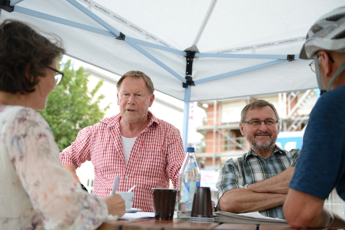 Ein Thema, das seine Fraktionskollegin Petra Rupp-Wiese ebenfalls sehr bewegt. Sie kommt angeradelt, um ebenfalls lange mitzudiskutieren. Erst kürzlich habe sie in Sachsen-Anhalt erlebt, was es heißt, wenn Gemeinden nicht wachsen, sondern stagnieren. Gehen die Menschen, fehlt auch irgendwann die Infrastruktur, und dann fühlen sich auch die Zurückgebliebenen nicht mehr wohl.