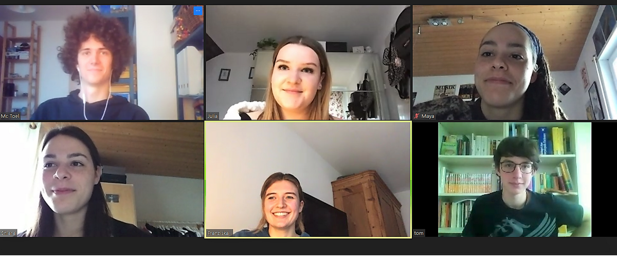 Theo Döllmann, Julia Horrer, Maya Haupt, Chiara Haupt, Franziska Fischer und Tom Besenfelder (von links oben nach rechts unten) starten im Mai mit den Abiturprüfungen. Sie haben dann über ein Jahr im Pandemie-Modus gelernt. Hier berichten sie über ihre Erfahrungen.