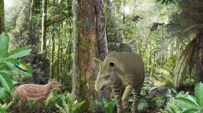 TÜBINGEN. Tübinger Forscher haben entdeckt, dass sich zwei frühe Säugetierarten vor 47 Millionen Jahren in gegensätzliche Richtungen entwickelt haben: Die Vorfahren der Pferde verringerten ihr durchschnittliches Körpergewicht innerhalb einer Million Jahre von 39 Kilogramm auf rund 26 Kilogramm. Tapire legten im gleichen Zeitraum durchschnittlich von rund 124 Kilogramm auf 223 Kilogramm zu. Das sind die Ergebnisse von Untersuchungen von Fossilien aus dem Geiseltal bei Halle, heißt es in der Pressemitteilung der Uni Tübingen.