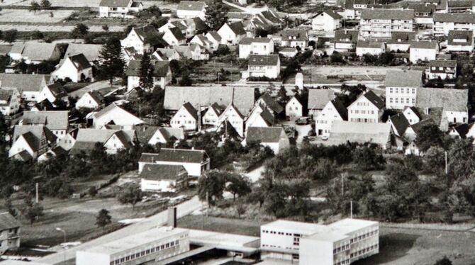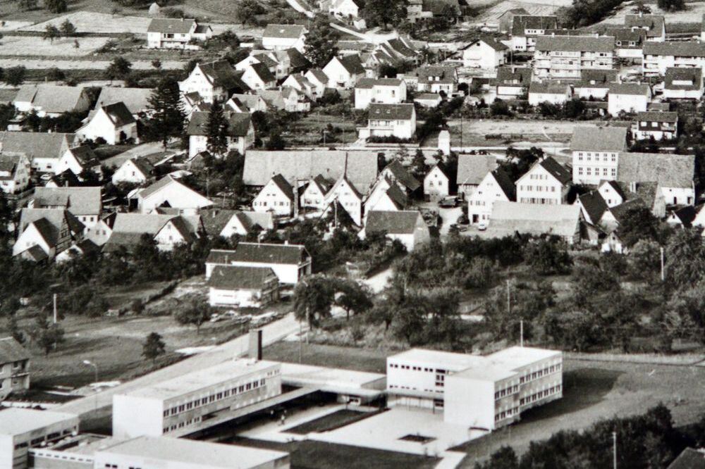 Ansicht von Talheim auf einer alten Karte: Da die Gebäude der Andeckschule hier noch ganz neu sind, stammt sie wohl aus dem Jahr 1967. Der Ort war noch deutllich kleiner. GEA-REPRO