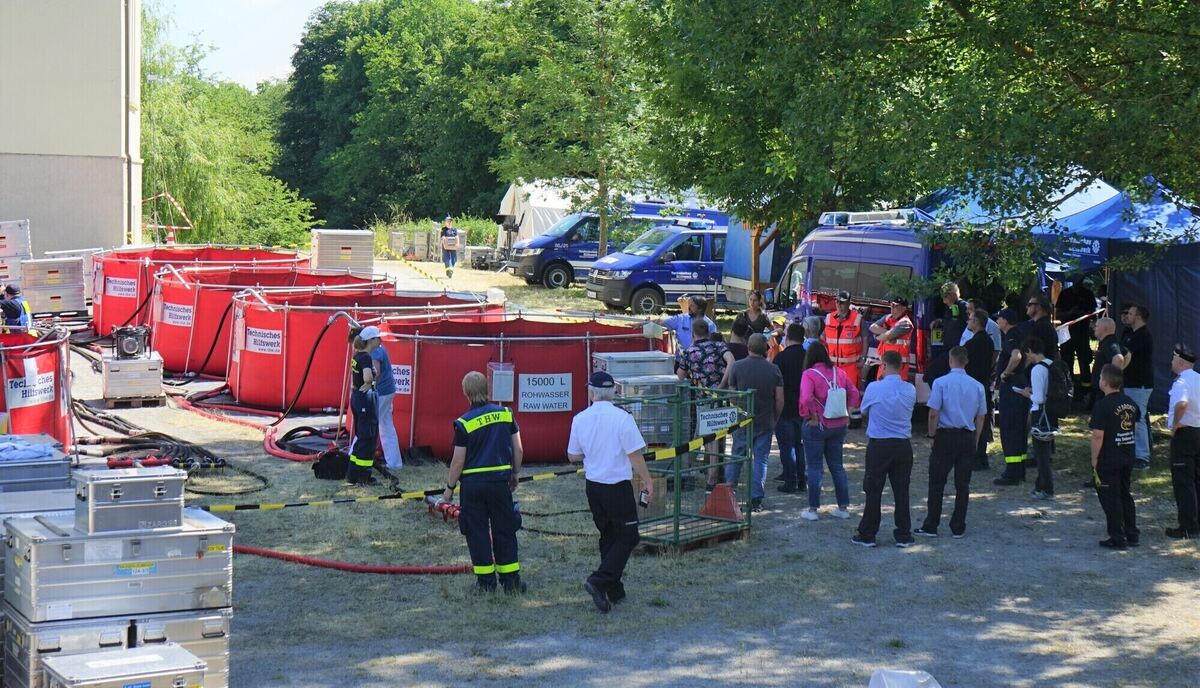 Aufbereitungsbecken bei der Trinkwasserübung des THW in Tübingen.
