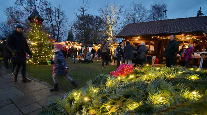 Es war deshalb nur eine Frage der Zeit, bis der Museumsgarten am Jettenburger Ortsrand das Ambiente der hochadligen Kollegen aufgreifen würde. Am Samstag nun war, wie nicht anders erwartet, erfolgreiche Premiere des zweitägigen Weihnachtszaubers im Höfle. Trotz widrigster Wetterbedingungen strömten am Auftakttag spätestens mit Beginn der Dämmerung und dem Aufleuchten von Tausenden Lichtern zahllose Schaulustige. Neugierig wurden die vielen kunstvollen Attraktionen zum Schauen, Kaufen und Kosten in Augenschein genommen.