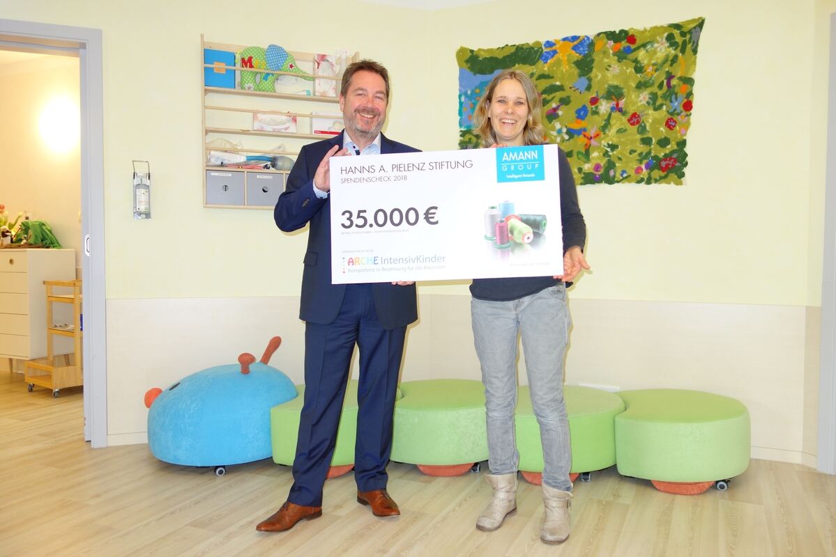 Wolfgang Findeis übergab als Vertreter der Hanns A. Pielenz-Stiftung 35 000 Euro an Christiane Miarka-Mauthe, Geschäftsführerin der Arche-Intensivkinder. FOTO: STRAUB