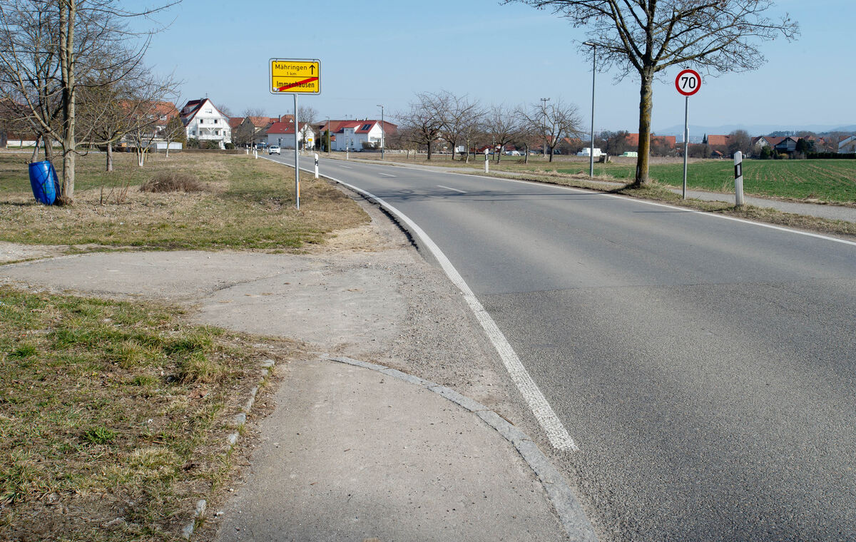 Weil der Fußweg auf der linken Seite am Ortsausgang von Immenhausen endet, müssen Schulkinder die Kreisstraße überqueren, um den Gehweg auf der anderen Seite zu nutzen. Eine Alternative: der Feldweg links, der jetzt ausgebaut werden soll. FOTO: TRINKHAUS