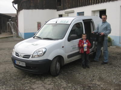 Thomas Schäfer und Sohn Marco liefern gemeinsam Milch aus.