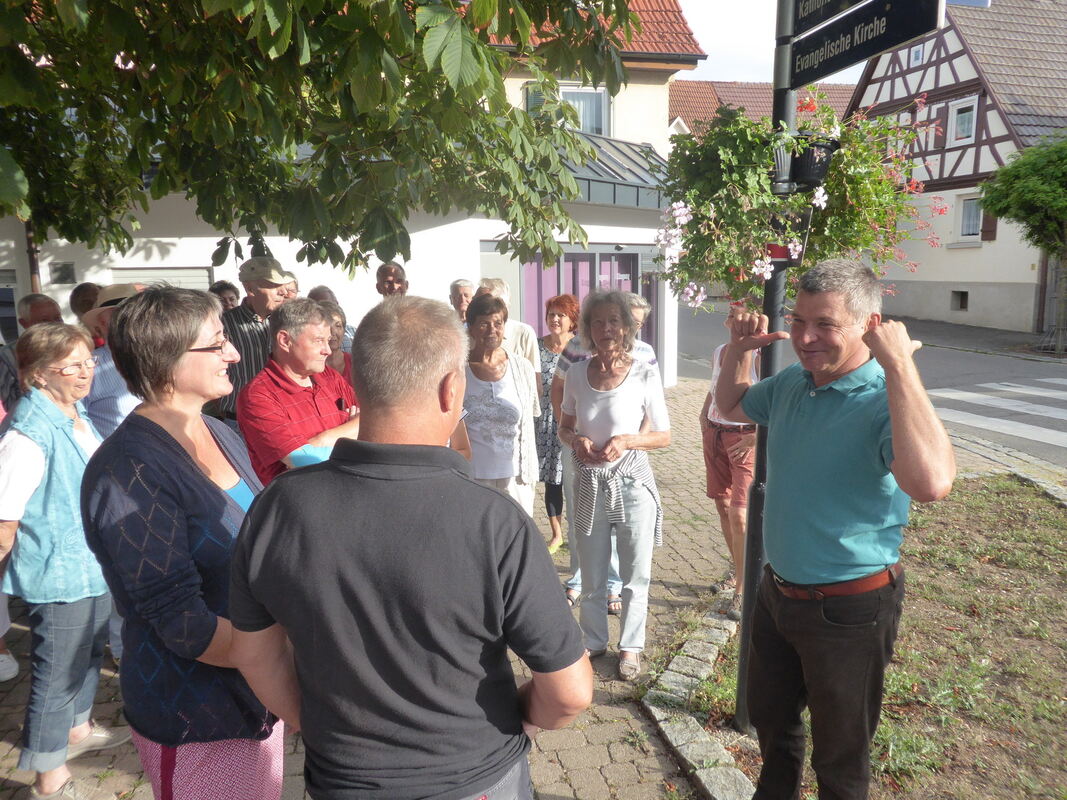 Beim Dorfspaziergang mit Nehrens Bürgermeister Egon Betz (rechts) gab es Hintergrundinformationen über das, was an der Ortsdurchfahrt und im Dorf noch zu tun ist.