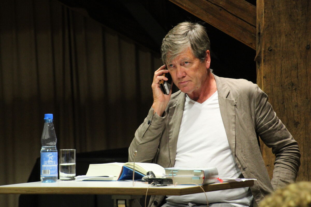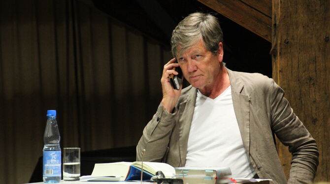 GOMARINGEN. Es ist schon ziemlich peinlich, wenn bei einer Dichterlesung ein Handy klingelt. Am Mittwochabend aber hat das Publikum im Gomaringer Schloss gespannt darauf gewartet. Schließlich sollte nicht irgendein Handy klingeln, sondern das des Vorlesers selbst, der sich zu Beginn gleich für die mögliche Störung entschuldigt hatte. Peter Prange, der Tübinger Bestseller-Autor, stellte auf Einladung der VHS den zweiten Band seines Romans »Eine Familie in Deutschland. Am Ende der Hoffnung« vor. Das war aber nicht die einzige Verpflichtung, die er an diesem Abend hatte. Gleichzeitig zeichnete der Fernsehsender RTL eine neue Promi-Ausgabe von »Wer wird Millionär?« auf, unter anderem mit Pranges Schriftsteller-Kollegen Sebastian Fitzek. Beide sind seit 15 Jahren befreundet, und deshalb hatte Fitzek den Tübinger Kumpel als seinen Telefon-Joker auserkoren in der Überzeugung, im Fall des Falles kompetente Unterstützung in Sachen Allgemeinbildung zu haben.
