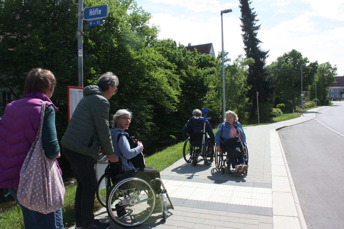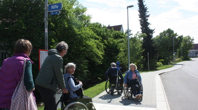 Wie barrierefrei ist Ofterdingen? Das testeten am Mittwoch unter anderem Kreisbehindertenbeauftragte Silvia Pflumm (ganz rechts) und, Dritte von links, Gemeinderätin Kerstin Klipp-Röcker.