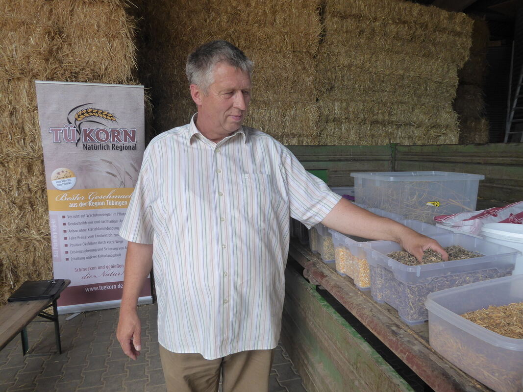 Was der Bauer kennt: Landwirt Ulrich Bechtle aus Waldhausen zeigt das Getreide, das er anbaut und lokal verkauft.