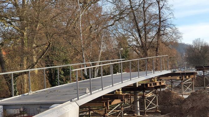 TÜBINGEN. Für alle, die mit dem Rad in der Universitätsstadt die Bahngleise überqueren müssen, gibt es noch in diesem Jahr einen direkten Weg: Die Radbrücke West, die das Behördenviertel und den Anlagenpark verbinden wird. Die Bauarbeiten schreiten langsam aber sicher voran. Ein weiteres Teilstück der künftigen Tübinger Radbrücke ist seit Mittwoch fertig.