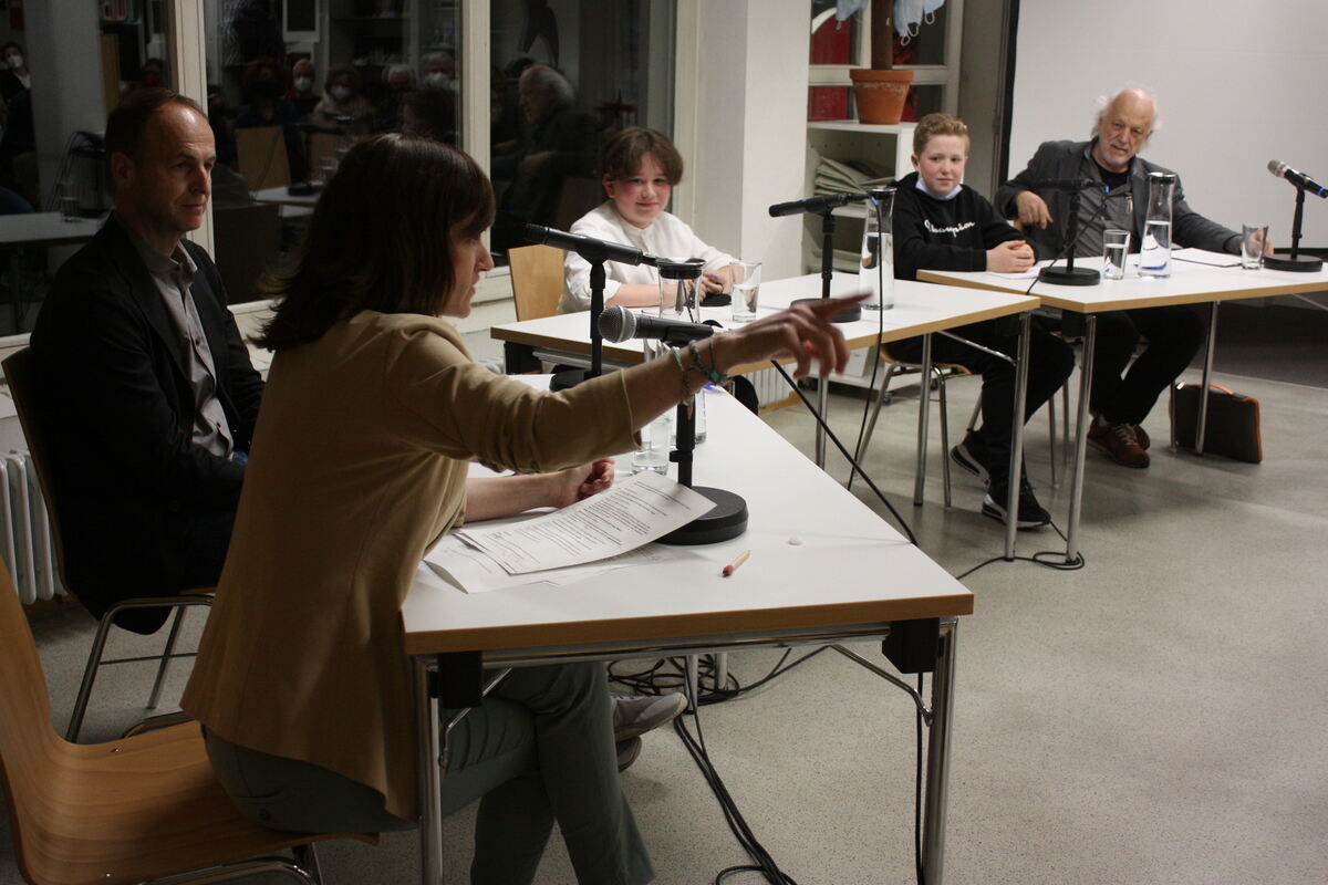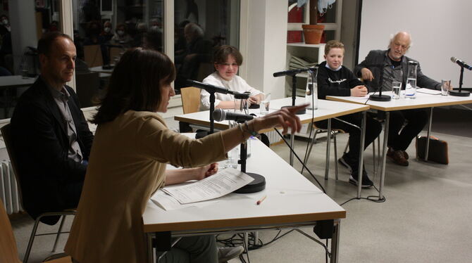 Mit Fabienne Christen auf dem Podium saßen Martin Schall, Rektor der Geschwister-Scholl-Schule, der Kinder- und Jugendpsychiater Gottfried Barth sowie zwei elfjährige Schüler, Kaan Atvur und David Truncali.