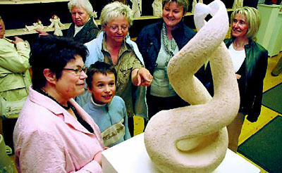 Aus der Kugel entwächst die Natur: Für Inge Bramberger, Anni Speidel und Renate Gänßle (von rechts) ist diese Skulptur der Ofterdingerin Renate Schramm (ganz links) der »absolute Favorit«.