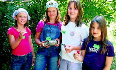 Junge Abfall-Expertinnen: Jelena, Anna, Anna-Lena und Tamara bei der Erkundung in Dußlingen.