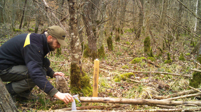 KREIS TÜBINGEN. Gibt es im Rammert wieder Wildkatzen? Förster Johannes Scheit hat eine Rasterfahndung mit Baldrian im Rammert gestartet. Der Wildtierbeauftragter des Landkreises Tübingen geht systematisch vor: Er hat den gesamten Rammert in ein Quadratkilometer große Raster unterteilt. In jedem der 15 Quadrate hat er drei mit Baldrian präparierte Lockstöcke aufgestellt, um Wildkatzen anzulocken und ihre Haare zu sammeln.