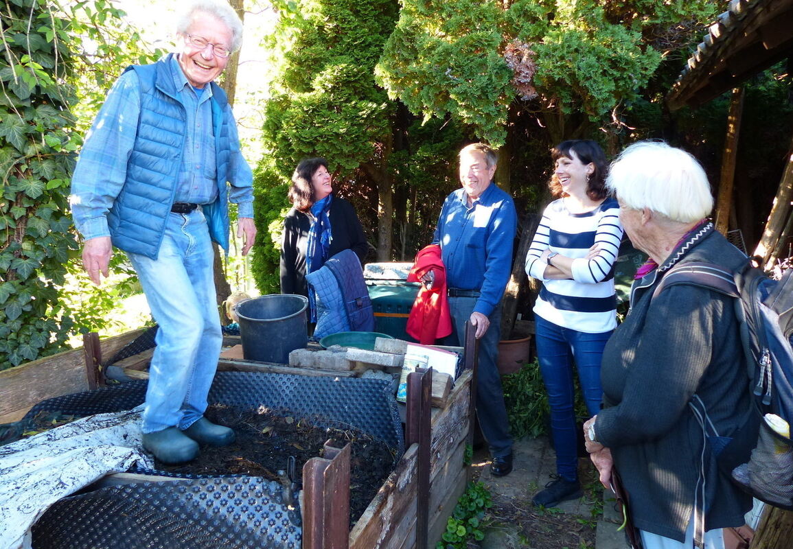 Hans Reibold (links) zeigt seinen »Komposttango«: Elke Müller, Uli Maag, Tanja Schülzle und Adelheid Streit schauen zu.