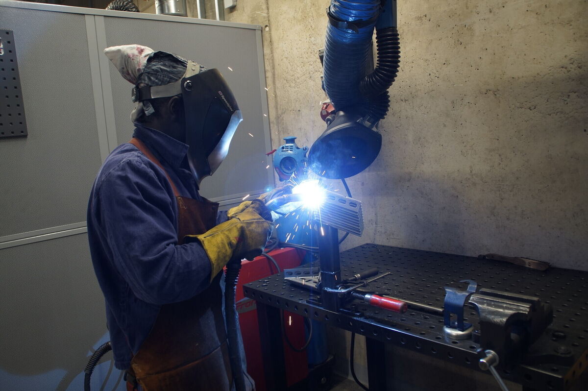 Ein Gefangener schweißt in der Metallwerkstatt der JVA Rottenburg