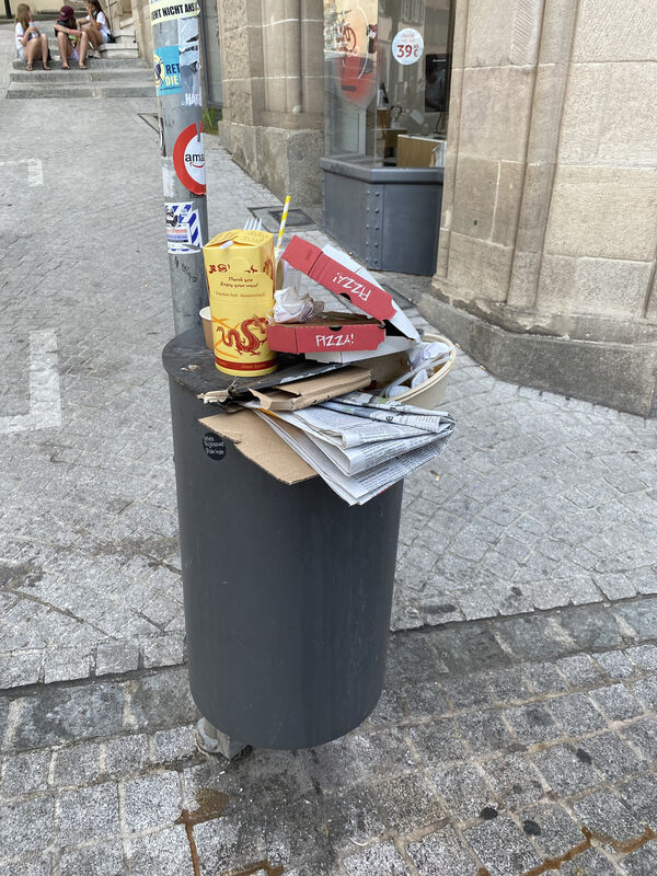 Oben an der Neckargasse ist nicht mehr genug Platz im Eimer für den Abfall.