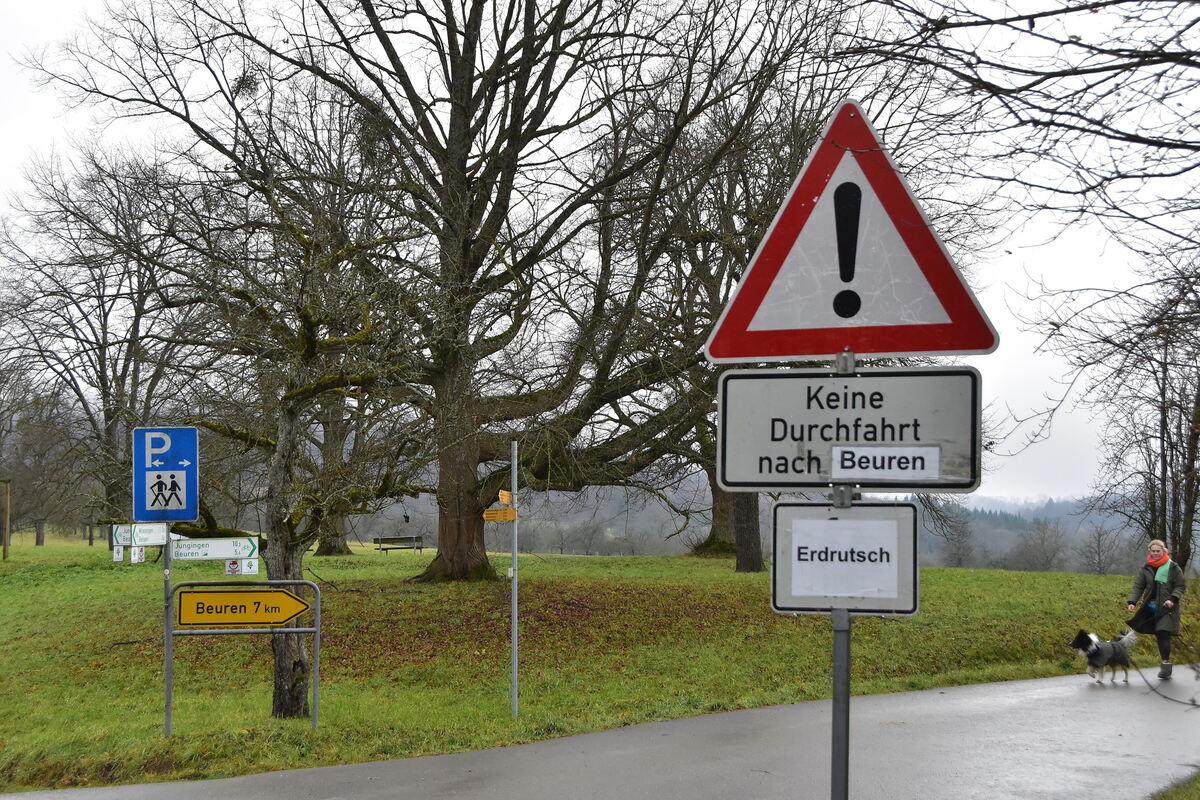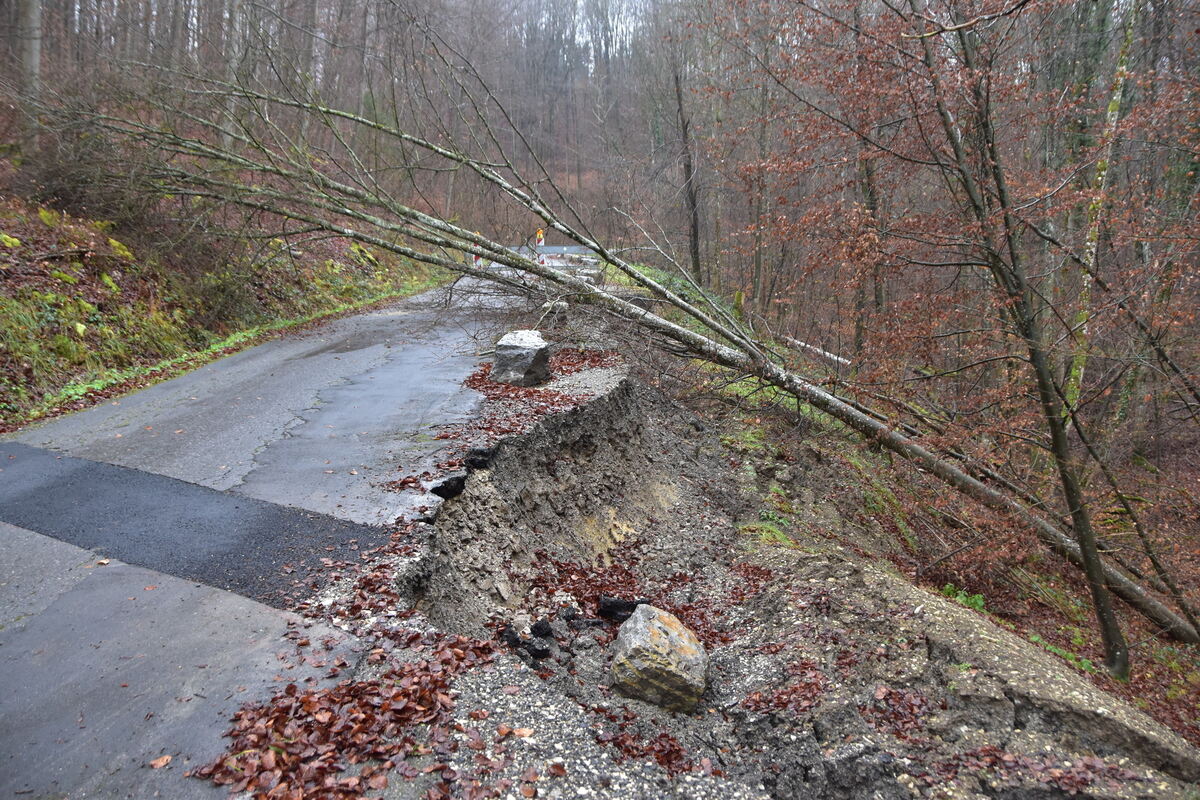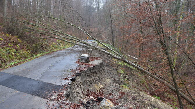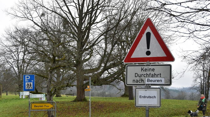 Erneut bremst ein Hangrutsch an der Steige von Belsen nach Beuren den Verkehr aus.