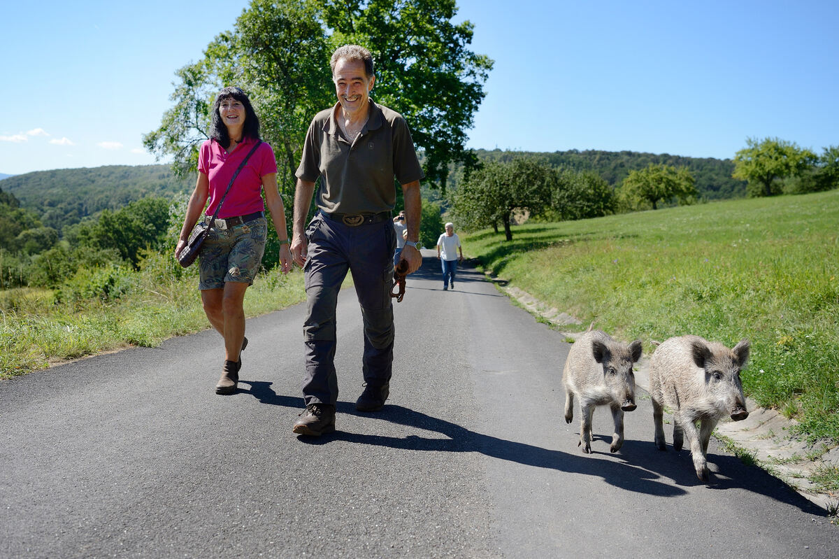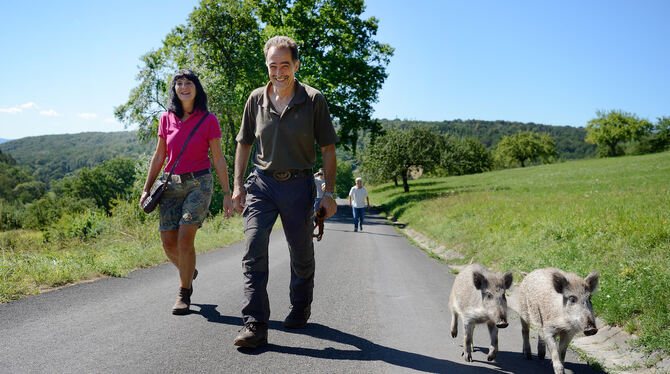 Auf zu neuen Gefilden: Birgit und Ulrich Maurer bringen Max und Moritz von Bebenhausen zu ihrem neuen Zuhause, dem Wildschweingehege im Schönbuch.