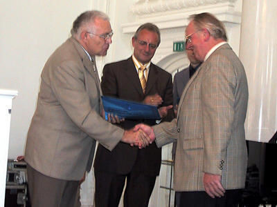 Stellvertretend für alle ehrenamtlichen Helferinnen und Helfer nahm Hans Zeeb (rechts) die Auszeichnung für den Förderverein des Schwab-Stifts von Reinhold Maier und Sozialminister Friedhelm Repnik (Mitte) entgegen.