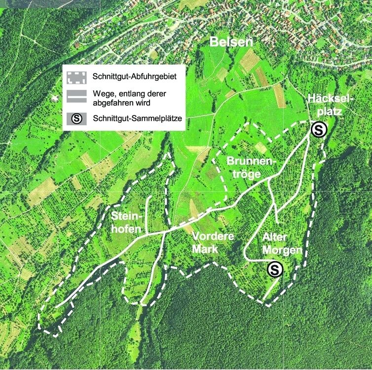 In diesem Gebiet in Belsen wird die Schnittgut-Sammelaktion organisiert. GRAFIK: PR