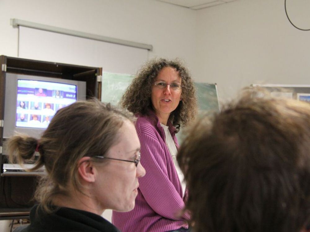 Sieglinde Gangl (Mitte) gibt einen Englischkurs in der Tübinger VHS für behinderte und lernschwache Menschen. Catharina Rauscher (links) von der Lebenshilfe steht dort einigen behinderten Teilnehmern als Hilfe zur Seite.