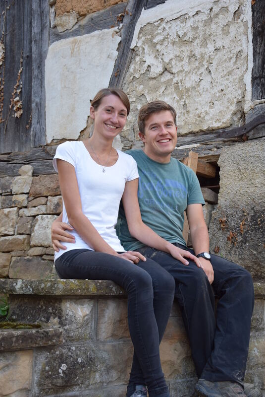 Lea Kemmler und Michael Gugel vor ihrem denkmalgeschützten Haus.