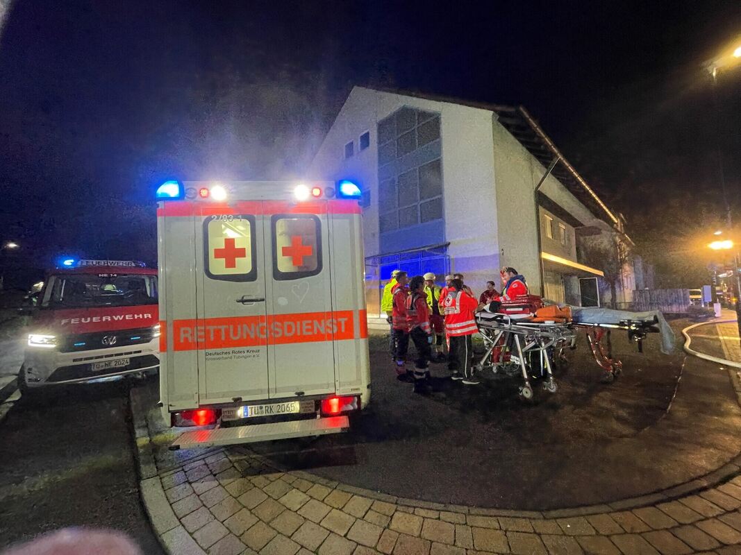 NEHREN. Beim Brand eines Wohnhauses in der Ortsmitte von Nehren ist am Freitagmorgen eine Frau verletzt worden. Sie konnte sich mit Rauchgasvergiftungen selbst aus dem Untergeschoss des einstöckigen Gebäudes in Sicherheit bringen. Eine zweite Bewohnerin im OG war offenbar nicht zuhause. Der Brand war im Keller oder in deren Wohnung ausgebrochen und hatte sich rasch auf die Zimmer ausgebreitet. Die Ursache stand am Morgen noch nicht fest. Ein massiver Löscheinsatz der kombinierten Einsatzkräfte der Feuerwehren Nehren, Dußlingen und Mössingen (Drehleiter) unter Mithilfe der Atemschutzreserve der Tübinger Wehr führte dazu, dass nach einer Stunde, gegen 7.45 Uhr, das Feuer in der Gartenstraße gelöscht war. Von Nachlöscharbeiten abgesehen. Die Wohnung im UG ist durch den Brand erheblich in Mitleidenschaft gezogen worden.