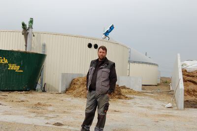 Er protestiert nicht, sondern investiert: Gerd Klett vor den Reaktoren seiner Biogas-Anlage am Ortsrand von Nehren.