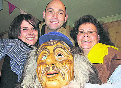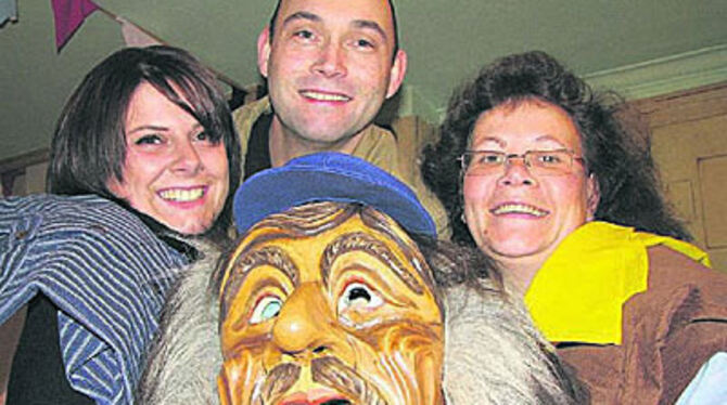 Präsentieren das neue Häs mit Larve (von links): Conny Rosenkranz, Andreas Schirdewahn und Dagmar Schaal-Schneider.