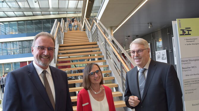 Abschied nach 22 Jahren und nach 14 Jahren: Landrat Joachim Walter (links) mit Personalchefin Renate Fischer und Finanzdezernent Werner Walz
