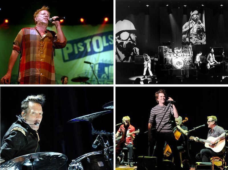 Die Sex Pistols (oben links), The Clash (oben rechts), Die Toten Hosen (unten rechts) und die Ärzte (unten links) mischen die Punk-Szene auf. Foto: dpa/epa
