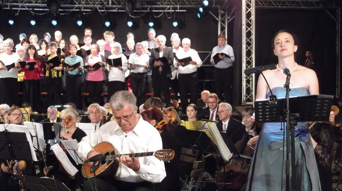 Nikos Hatziliadis, Mirjam Kapelari, Tübinger Ärzteorchester und Konzertchor Reutlingen auf der Tübinger Sudhaus-Waldbühne.