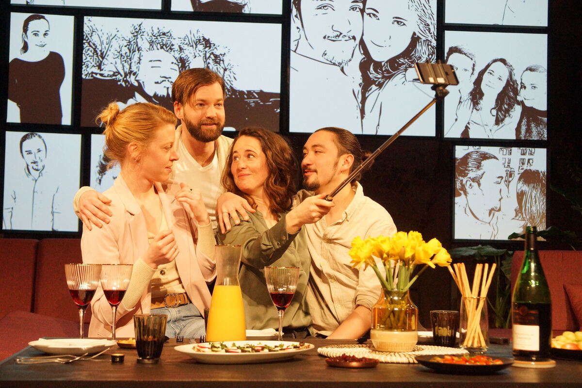 Szene aus »Im Antlitz der Maschinen« am Tübinger Zimmertheater mit (von links) Katharina Rehn, Mario Högemann, Thea Rinderli und Christopher Wittkopp. FOTO: GONSCHIOR