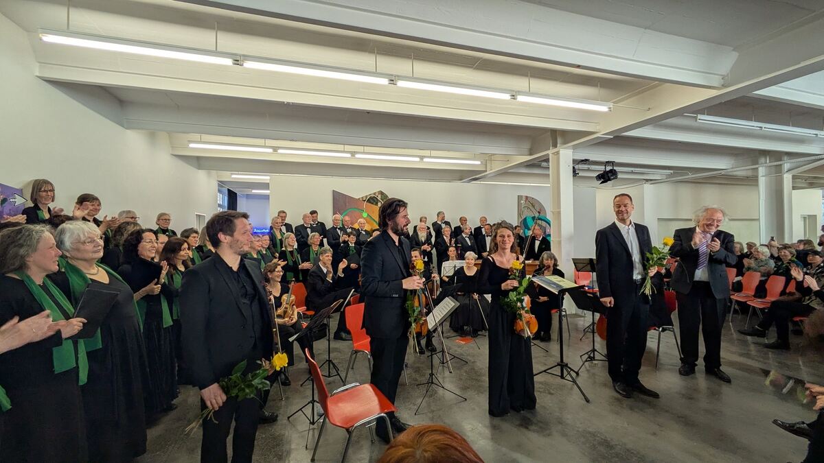 Nach dem Konzert mit drei Werken von Bach freuten sich Chor und Solisten über großen Applaus.