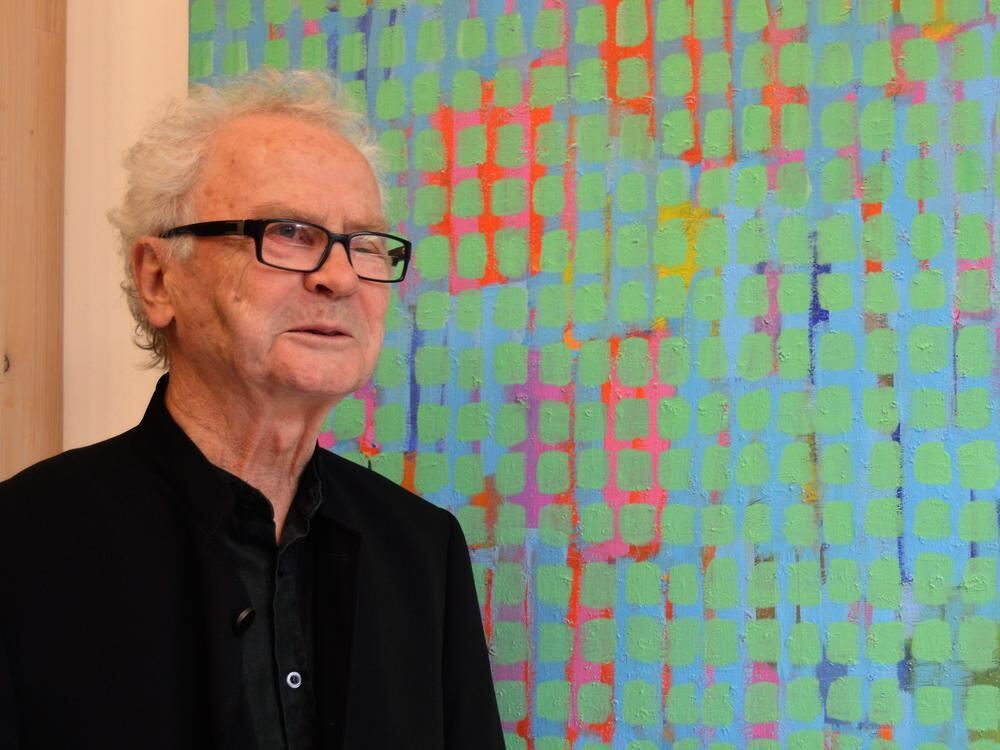 Andreas Felger, der im vergangenen Jahr 80 Jahre alt wurde, vor einem seiner Bilder in der Galerie in der Ziegelhütte in Gönningen. FOTO: VEY