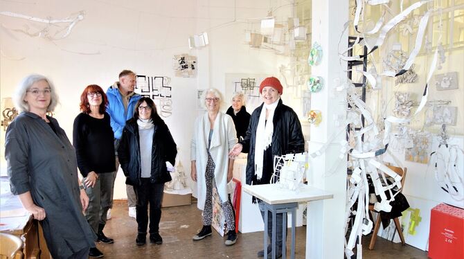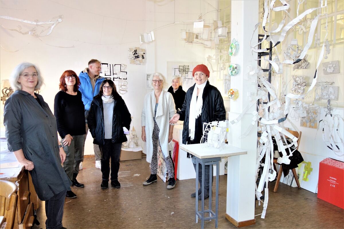 Im Atelier von Barbara Wünsche-Kehle versammelt (von links): Barbara Wünsche-Kehle, Ingrid Swoboda, Leonard Staigle, Lisa Voss, Eva Schulz, Beate Hölscher und Ute Kroll.