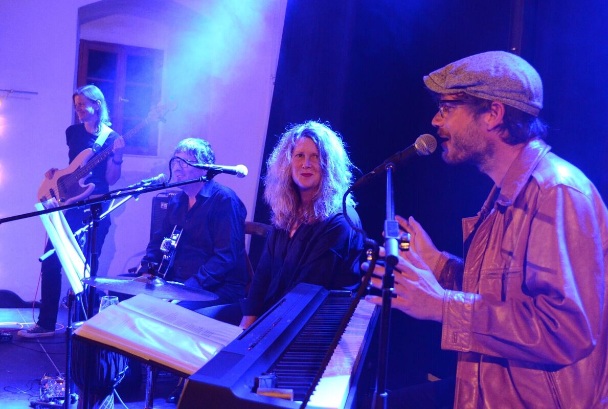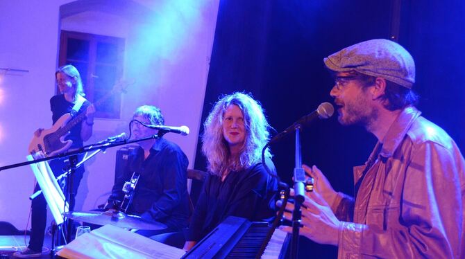 Null Allüren, dafür ein gutes Gespür für den Zeitgeist von damals: die Rolling-Stones-Coverband Butterfly On A Wheel, bestehend aus (von rechts) Karl Neukauf am Piano, Ilka Posin auf dem Cajón, Hans Rohe an der Gitarre und Heike Becker am Bass.