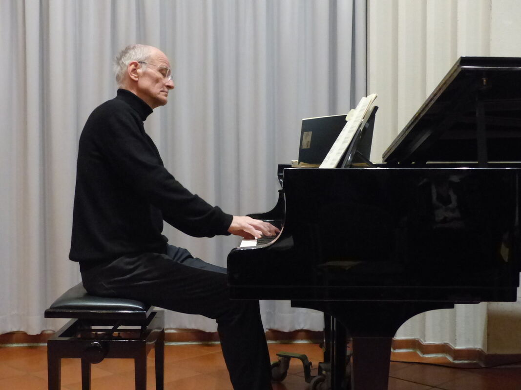 Florian Kunz am Flügel des Reutlinger Spitalhofsaals.