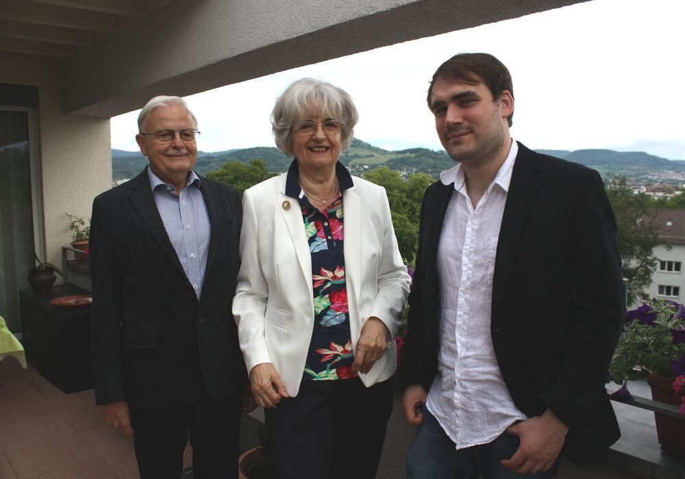 Hans Dieter und Christel Guthörle mit dem jungen Pianisten Georg Michael Grau, den sie mit ihrer Stiftung, der Christel-Guthörle-Stiftung, unterstützen. Er tritt am Sonntag, 26. Juni im Konzert der Jungen Sinfonie in der Reutlinger Stadthalle als Solist auf. GEA-FOTO: STRÖHLE