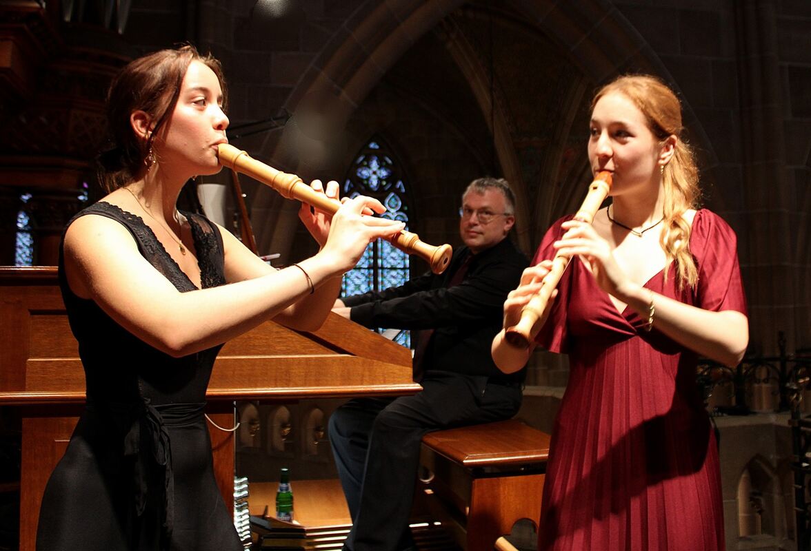 Emma Lou Köhler (links), Hannah Blind (Blockflöte) und Torsten Wille (Orgel) beeindruckten als perfekt harmonierendes Trio.