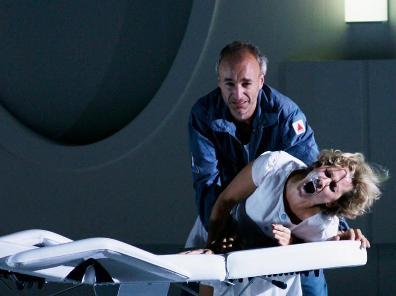 Dietrich Henschel als Kris Kelvin und Marie Arnet als Harey stehen im Mittelpunkt der Oper »Solaris«.Foto: Bregenzer Festspiele/Karl Forster