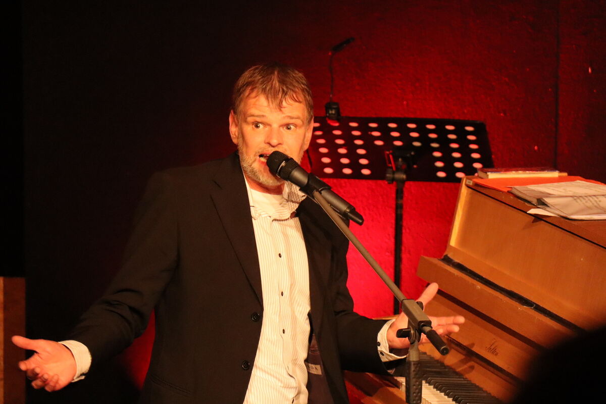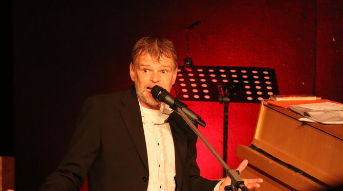 Christian Hirdes garniert seine Pointen mit dem Klavier oder der Gitarre. FOTO: SCHNIEPP
