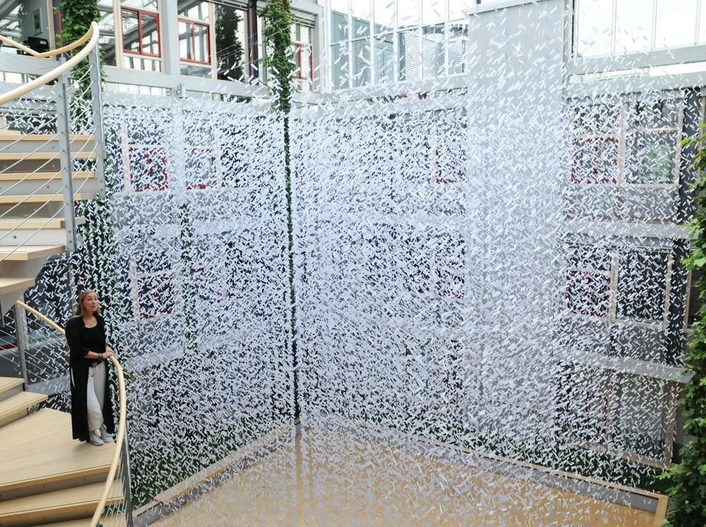 66 082 Papierstreifen hat Danuta Karsten für ihre frei hängende Installation »Papier bewegt« im Dominohaus Reutlingen verarbeitet.