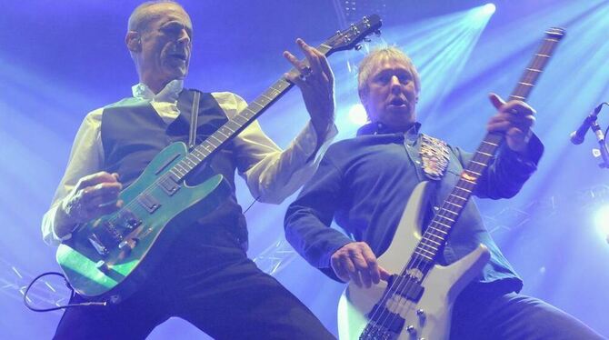 Noch diese Tour, dann winkt der Ruhestand: Gitarrist Francis Rossi (links) und John »Rhino« Edwards am Bass beim Auftritt von Status Quo in der Porsche-Arena im Rahmen der Abschiedstournee der legendären Rock-Gruppe.