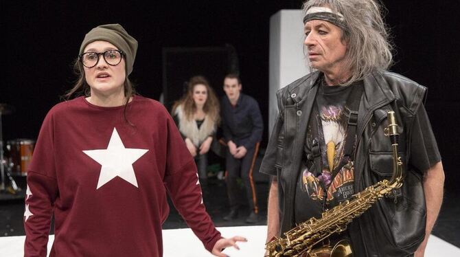Es ist für Duck (Angelina Berger) nicht immer einfach, einen zweiten Keith Richards (Rupert Hausner) zum Vater zu haben. FOTO: METZ