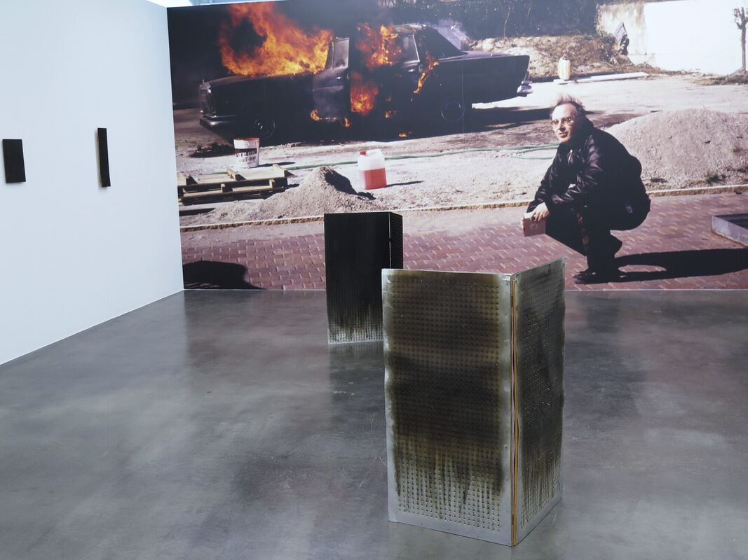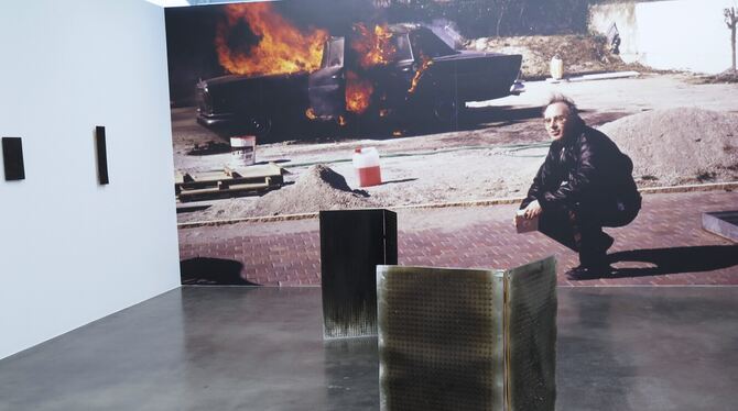 Blick in die Ausstellung in den Wandel-Hallen. Das Foto zeigt Bernard Aubertin bei einer Feueraktion im Frühjahr 1990 bei Verona.
