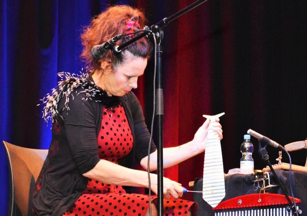 Nessi Tausendschön mit einem Krawatten-Instrument. FOTO: VEY
