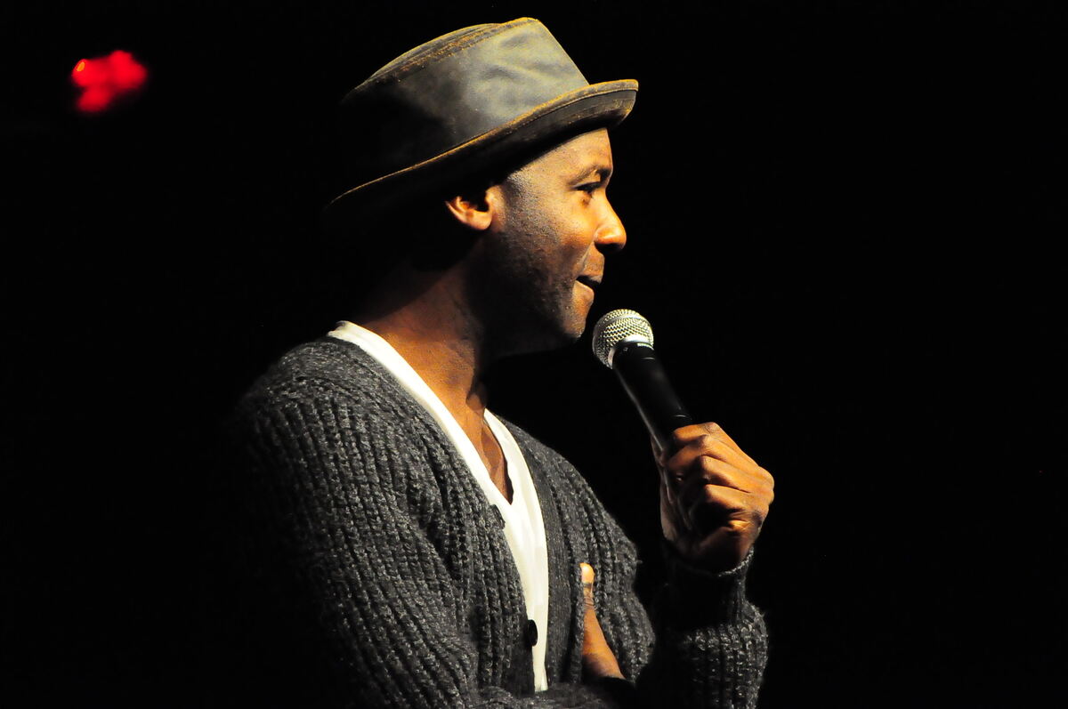 »Auch mit Glatze kannst du Froh-Locken«: Der Comedian Dave Davis bei seinem Gastspiel mit Gute-Laune-Mission im Tübinger Sudhaus. FOTO: KIPP